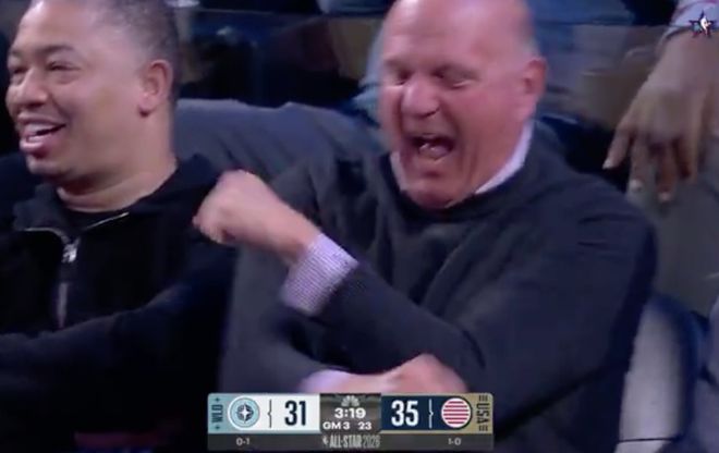 莱昂纳德在最后双方维持45-45时,他还剩3.5秒命中准绝杀三分率队取胜,也是让场下观战的快船老板鲍尔默疯狂呐喊助威。