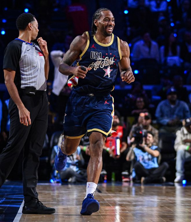 科怀-伦纳德在全明星周末对阵世界队一战,12分钟里13中11,三分7中6,拿到31分,他就在约基奇的眼前打出炸裂表现。关键是伦纳德的竞技状态一直都很炸裂,本赛季的他打出生涯最高光的赛季。