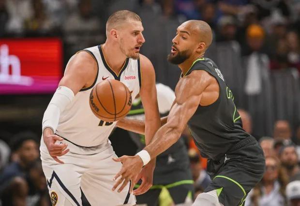 戈贝尔防约基奇防挺好的,约基奇几次持球没顶动,戈贝尔放约基奇三分的选择没毛病,这使得他在对位约基奇时还有余力稍微做一点护筐协防。在兰德尔对位约基奇的时段则完全没有协防可言,他只能一步不离约基奇。戈贝尔甚至在进攻端也交出了超预期表现,有篮下对着约基奇的终结和头顶摘板,甚至还在弧顶持球突破了约基奇。可以说,今天戈贝尔直面约基奇的回合,攻防两端都没落下风。