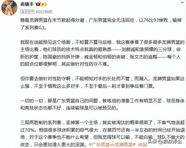 广东主场惨遭爆冷引热议!媒体人:以耻辱方式输球 这是史无前例
