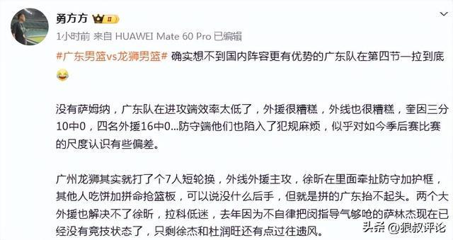 确实想不到国内阵容更有优势的广东队在第四节一拉到底。