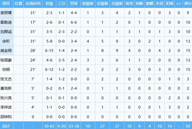 广东男篮全队投篮78中30,命中率低至约38%,其中三分球44中11,命中率只有25%。