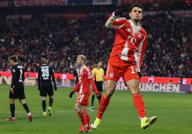 迪亚斯在利物浦时期就具备很强的边路冲击力,速度、突破和反抢一直都在,但当时他更多是去完成推进、压迫防线和强行过人的任务。到了拜仁之后,他的这些个人能力被放进了一个更容易转化为进球数据的体系里。拜仁前场的进攻空间更大,边中配合更加流畅,迪亚斯拿球后的选择也更加明确。他不仅能自己内切完成射门,也能在攻防转换中送出关键传球。