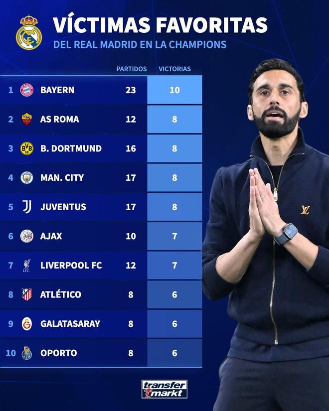 赛前来自德转的统计指出,皇马此前曾经23次在欧冠中和拜仁交手,期间他们取胜10场,拜仁也是他们在欧冠中取胜场次最多的对手。
