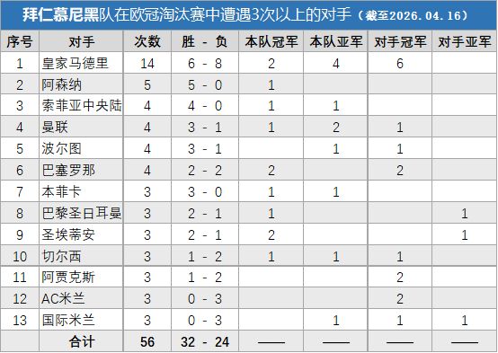 怎样才算得上“老对手”?门槛不算高,两支球队在欧冠淘汰赛中遭遇过(含)3次以上,就可以入围,否则可讨论的范围就太窄。