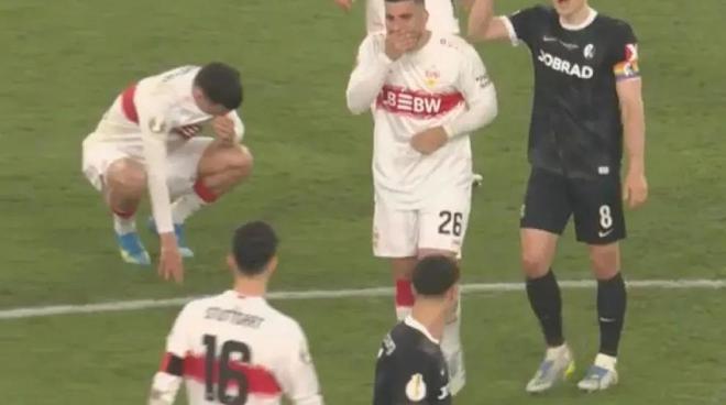 比赛中,斯图加特中场哈努斯身体不适,转播镜头随后将镜头从球场上移开,因为这名球员似乎呕吐了,之后他把头埋进了球衣里。